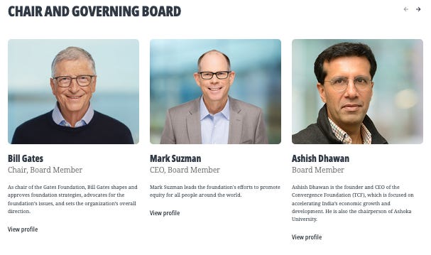As I reported as far back as 2022, some of the board members are not actually independent, having financial or institutional ties to Gates or the Gates Foundation that could fairly be seen as conflicts of interest. Bill Gates, himself, chairs the board, and reportedly has special veto power. The CEO of the Gates Foundation, Mark Suzman, also sits on the board. Can we really expect someone who collects $1.5 million in annual compensation from the Gates Foundation to criticize or challenge his boss?